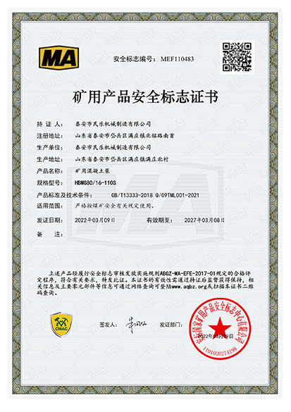 熱烈慶祝我廠礦用混凝土輸送泵通過(guò)煤安安全標(biāo)志證書(煤安編號(hào):MEF110483、MEF110484、MEF110485)。目前公司成功研制出HBMD15/6-22S混凝土輸送泵、以下簡(jiǎn)稱“15立方混凝土泵”,且在銷售市場(chǎng)俏銷的形勢(shì)下乘勝前進(jìn),又試機(jī)成功**款新型的高壓大輸送量混凝土輸送泵HBMD30/13-90S混凝土輸送泵、HBMD80/16-110S混凝土輸送泵,目前已成功申辦“煤安標(biāo)志”,把產(chǎn)品推向市場(chǎng)。