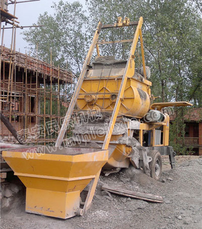 3.攪拌好的混凝土自動反轉(zhuǎn)出料到泵送料斗沿管道輸送到地點(diǎn)。